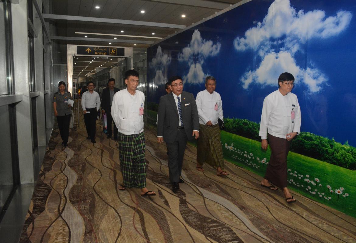 ပြည်ထောင်စုဝန်ကြီး ဒေါက်တာညွန့်ဖေ ဦးဆောင်သော မြန်မာကိုယ်စားလှယ်အဖွဲ့ မြန်မာနိုင်ငံသို့ ပြန်လည်ရောက်ရှိ