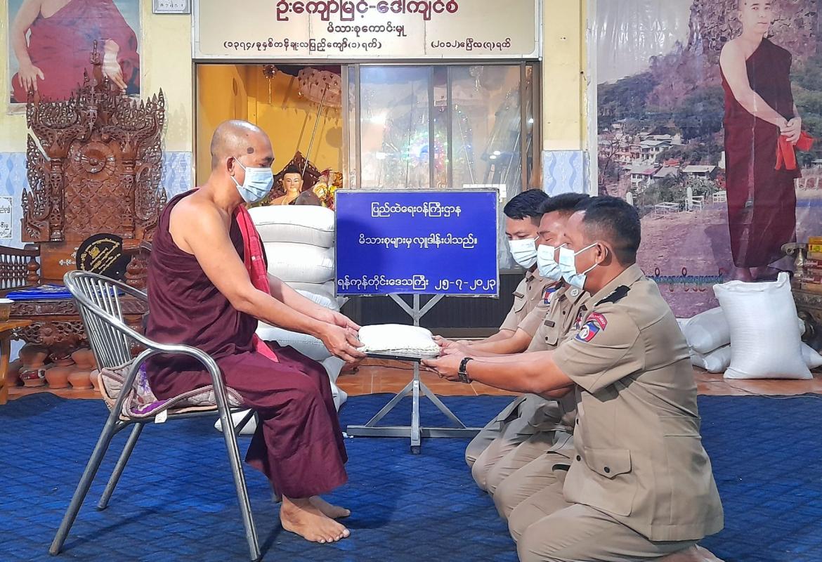 ပြည်ထဲရေးဝန်ကြီးဌာန မိသားစုများ ဆွမ်းဆန်တော်နှင့် ဆန်ကြာဆံများ ဆက်ကပ်လှူဒါန်း