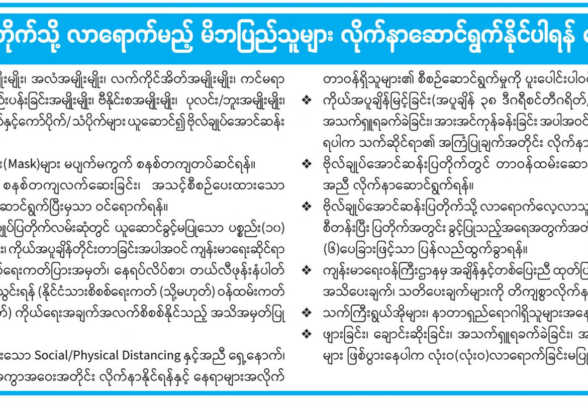 ဗိုလ်ချုပ်အောင်ဆန်းပြတိုက်သို့ လာရောက်မည့် မိဘပြည်သူများ လိုက်နာဆောင်ရွက်နိုင်ပါရန် မေတ္တာရပ်ခံပန်ကြားခြင်း