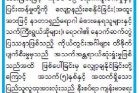 ရန်ကုန်မြို့နှင့် မန္တလေးမြို့အတွက် ရည်ညွှန်းလက်ကားဈေးနှုန်းများနှင့် ပြည်ထောင်စုနယ်မြေ နေပြည်တော်၊ တိုင်းဒေသကြီး/ပြည်နယ် မြို့တော်များအတွက် ရည်ညွှန်းလက်လီဈေးနှုန်းများ