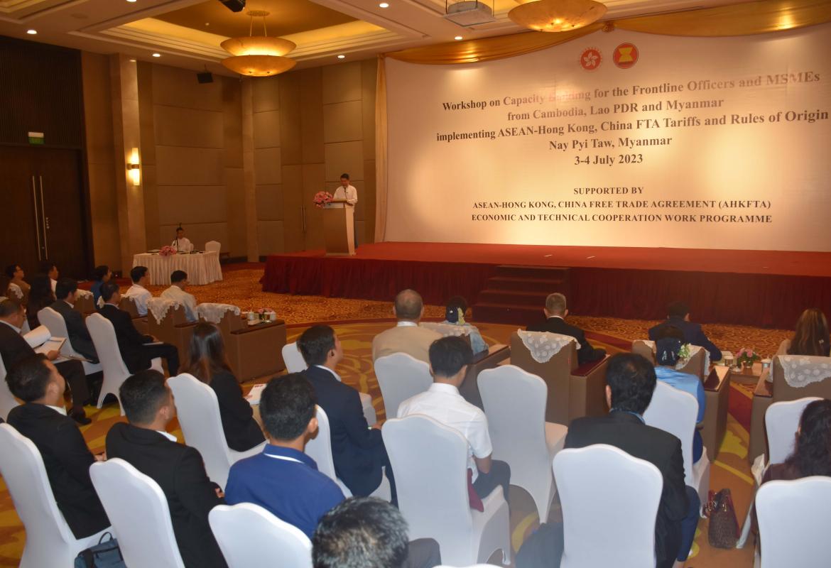 အာဆီယံ−ဟောင်ကောင်(တရုတ်) လွတ်လပ်သော ကုန်သွယ်မှုဒေသ၏ အကောက်ခွန်နှုန်းထားနှင့် ပင်ရင်းနိုင်ငံစည်းမျဉ်းဆိုင်ရာ ဒေသတွင်းအလုပ်ရုံ ဆွေးနွေးပွဲကျင်းပ