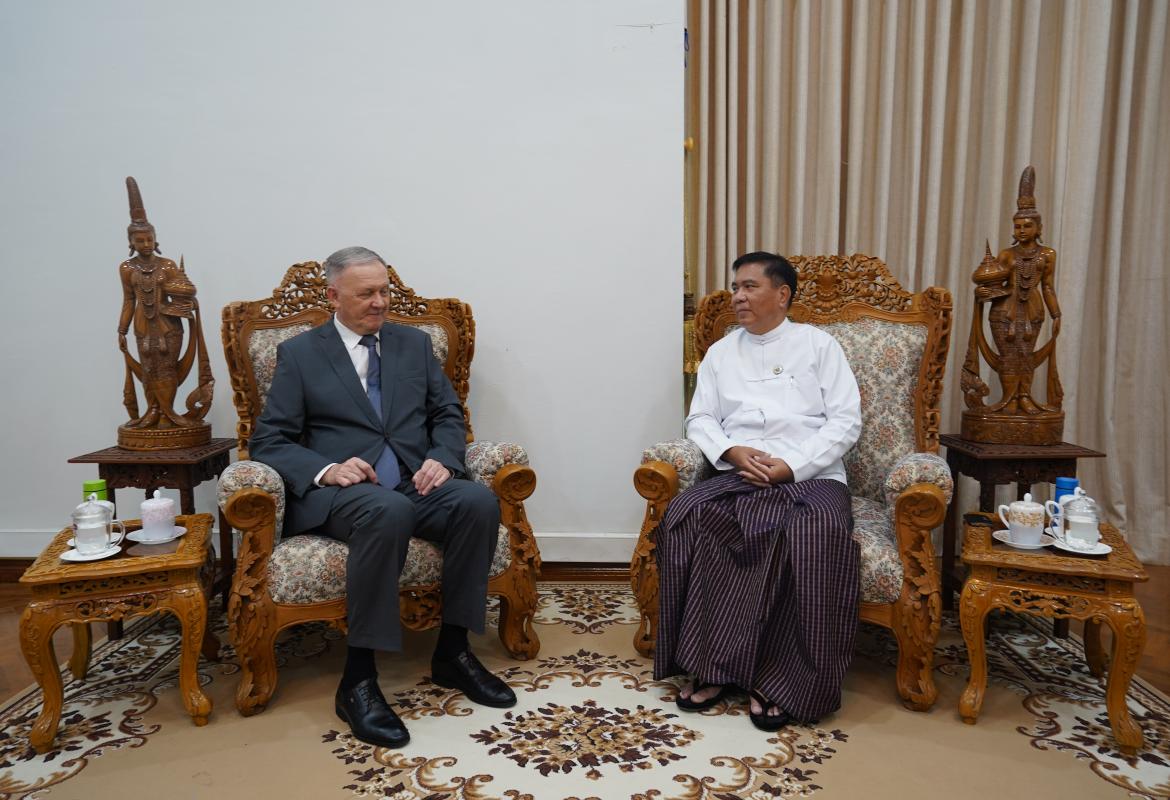 ပြည်ထောင်စုဝန်ကြီး ဒေါက်တာမျိုးသိန်းကျော် တာဝန်ပြီးဆုံး၍ ပြန်လည်ထွက်ခွာမည့် မြန်မာနိုင်ငံဆိုင်ရာ ရုရှားသံအမတ်ကြီးအား လက်ခံတွေ့ဆုံ