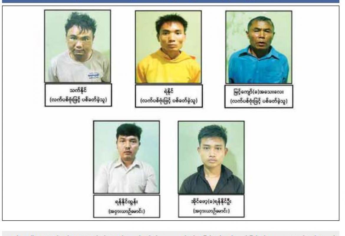 နေပြည်တော်ကောင်စီနယ်မြေအတွင်း အကြမ်းဖက်ဖောက်ခွဲဖျက်ဆီးရေးလုပ်ငန်းများ ဆောင်ရွက်လျက်ရှိသည့် တရားခံများအား လက်နက်/ခဲယမ်းများနှင့်အတူ ဖမ်းဆီးရမိ