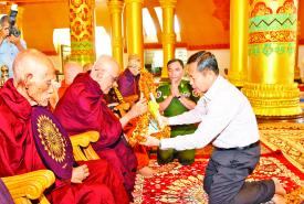 ဒုတိယဝန်ကြီးချုပ် ဒုတိယဗိုလ်ချုပ်မှူးကြီး စိုးဝင်း ရခိုင်ပြည်နယ်အတွင်း မိုခါမုန်တိုင်းတိုက်ခတ်မှုကြောင့် ပျက်စီးသွားသော ဘုန်းတော်ကြီးကျောင်းများနှင့် ဘုန်းတော်ကြီးသင်ပညာရေးကျောင်းများအတွက် အလှူငွေများပေးအပ်လှူဒါန်းပွဲသို့တက်ရောက်