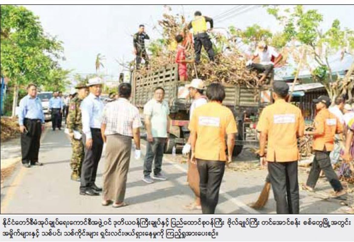 နိုင်ငံတော်စီမံအုပ်ချုပ်ရေးကောင်စီအဖွဲ့ဝင် ဒုတိယဝန်ကြီးချုပ်နှင့် ပြည်ထောင်စုဝန်ကြီး ဗိုလ်ချုပ်ကြီး တင်အောင်စန်း စစ်တွေမြို့အတွင်းစုပေါင်းသန့်ရှင်းရေးဆောင်ရွက်နေမှုနှင့် မုန်တိုင်း ဒဏ်သင့်ပြည်သူများအား ကူညီထောက်ပံ့ပေးနေမှုအခြေအနေများ လှည့်လည် ကြည့်ရှု