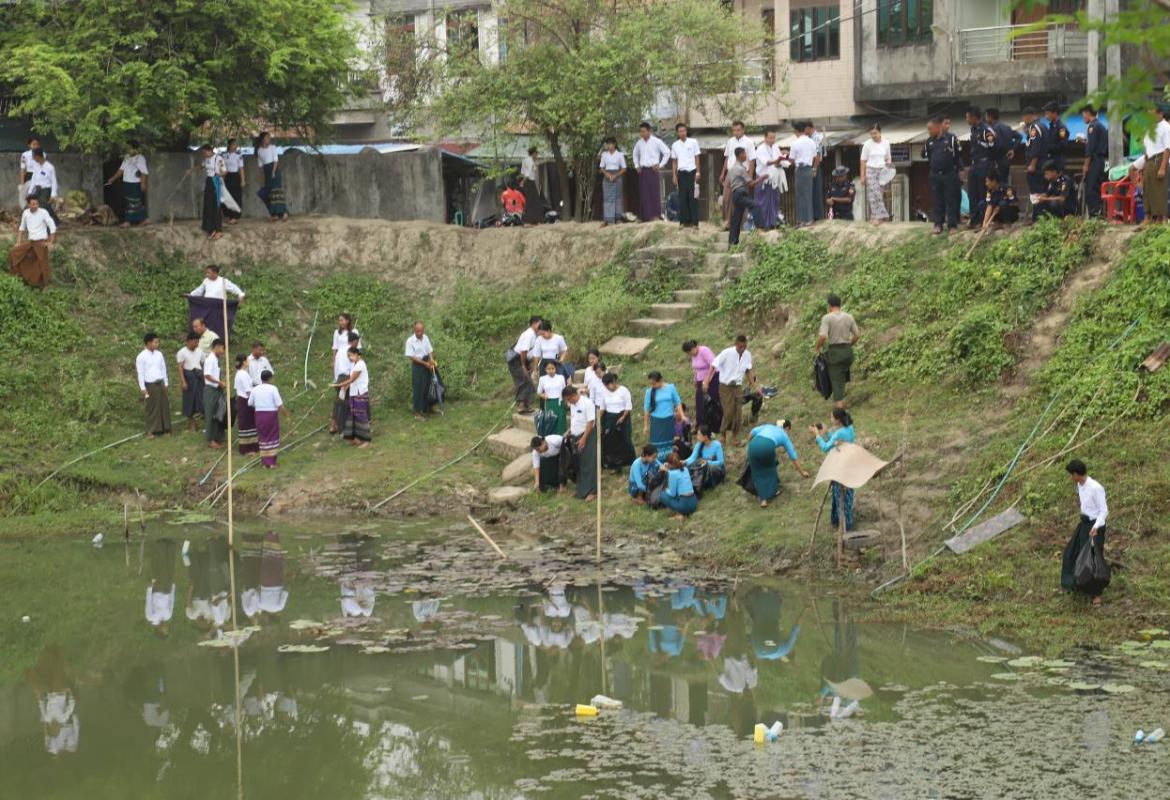 ပေါက်တောမြို့ အလယ်ပိုင်းရပ်ကွက်ရှိ ဘဲသောက်ကန်အား သန့်ရှင်းရေးဆောင်ရွက်