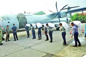 ဆိုင်ကလုန်းမုန်တိုင်း(မိုခါ)တိုက်ခတ်မှုကြောင့် သဘာဝဘေးဒဏ်သင့်ဒေသများရှိ ပြည်သူများအတွက် ထောက်ပံ့ရေးပစ္စည်းများအား တပ်မတော်(လေ)ရှိ လေယာဉ်၊ ရဟတ်ယာဉ်များဖြင့် ဆက်လက်ပို့ဆောင်