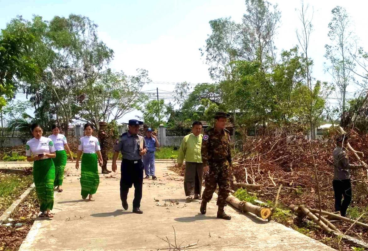 မင်းပြားမြို့နယ်၌ သန့်ရှင်းရေးဆောင်ရွက်နေမှု ဗိုလ်မှူးချုပ်ခင်ဇော် ကြည့်ရှု