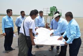 ပြည်ထောင်စုဝန်ကြီး ဦးသောင်းဟန် မကွေးမြို့အနီးရှိ ၁၀၀ မဂ္ဂါဝပ် ထုတ်လုပ်နိုင်မည့် နေရောင်ခြည် စွမ်းအင်နှင့် သဘာဝဓာတ်ငွေ့အင်ဂျင်ပေါင်းစပ်သုံး ဓာတ်အားပေးစက်ရုံ စီမံကိန်းလုပ်ငန်းဆောင်ရွက် နေမှုကြည့်ရှုစစ်ဆေး