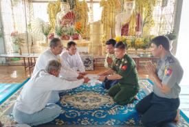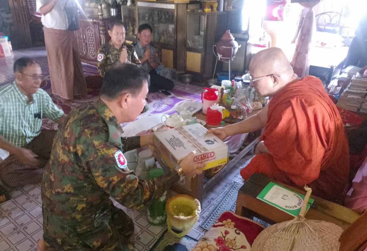 ရခိုင်ပြည်နယ်၊ ပုဏ္ဏားကျွန်းမြို့နယ် ပြန်လည်ထူထောင်ရေး လုပ်ငန်းတာဝန်ခံ ဗိုလ်မှူးချုပ်ဝင်းမောင်နှင့်အဖွဲ့သည် မေ ၂၄ ရက် နံနက်ပိုင်းက ပုဏ္ဏားကျွန်းမြို့နယ်ရှိ ဘုန်းတော်ကြီးကျောင်းများသို့ သွားရောက်၍ ............