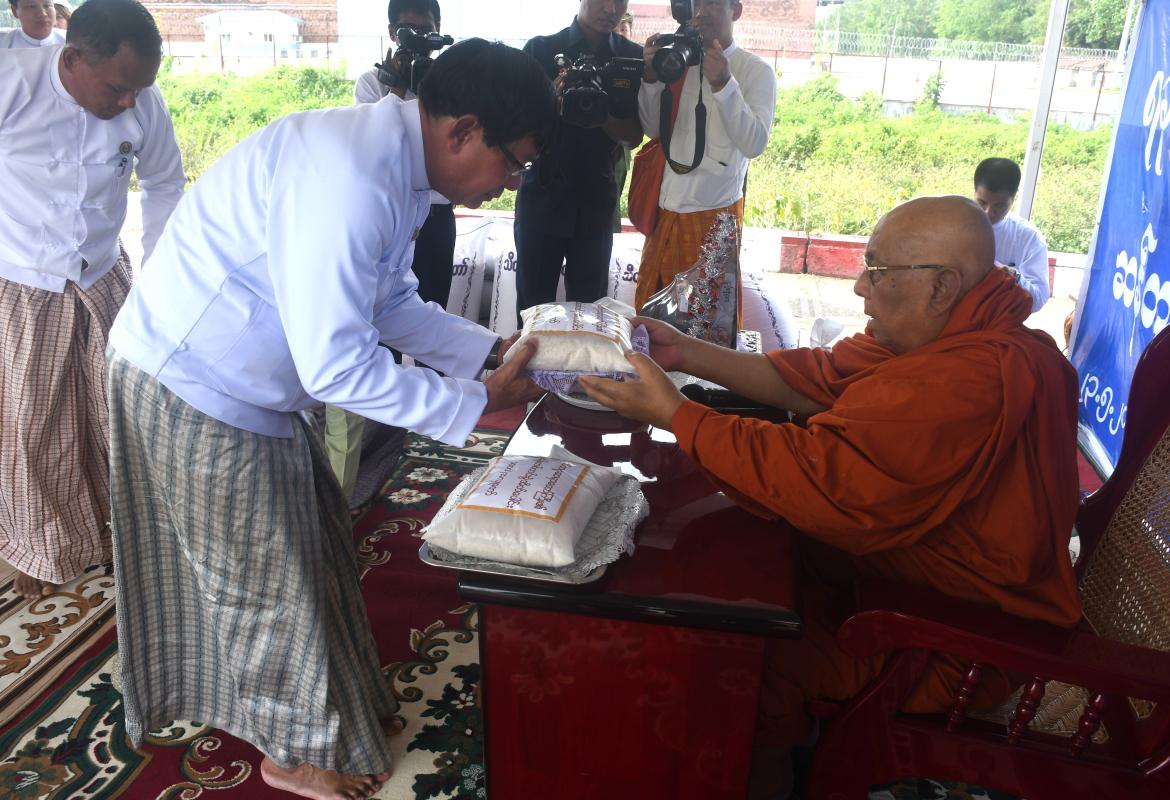 ရခိုင်ပြည်နယ် လေဘေးသင့်ပြည်သူများအတွက် သီတဂူဆရာတော် ဒေါက်တာဘဒ္ဒန္တဉာဏိဿရက တစ်တင်းခွဲဝင် ဆန်အိတ် ၁၀၀၀ ပေးအပ်လှူဒါန်းပွဲကို ဗိုလ်အောင်ကျော်ဆိပ်ကမ်းတွင် မေ ၂၃ ရက်က ကျင်းပခဲ့သည်။