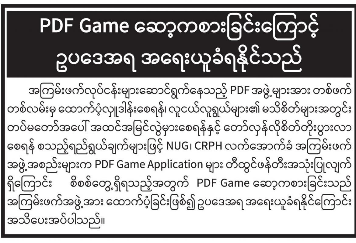 PDF Game ဆော့ကစားခြင်းကြောင့် ဥပဒေအရ အရေးယူခံရနိုင်သည်