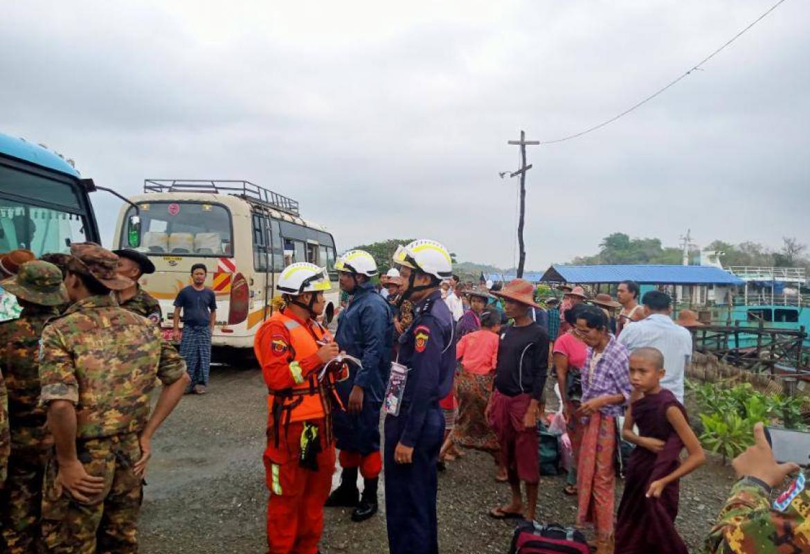 ဆိုင်ကလုန်းမုန်တိုင်း မိုခါ(MOCHA) ဖြတ်သန်းတိုက်ခတ်မှုကြောင့် ထိခိုက်ပျက်စီးဆုံးရှုံးမှုများ ဖြစ်ပေါ်ခဲ့သော ရခိုင်ပြည်နယ်အတွင်းရှိ မုန်တိုင်းဒဏ်သင့် ပြည်သူများအတွက် ထောက်ပံ့ရေးပစ္စည်းများအား တပ်မတော်(ရေ)မှ စစ်ရေယာဉ်များဖြင့် ပို့ဆောင်