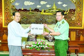 မုန်တိုင်းဒဏ်သင့်ဒေသများ၌ ကူညီကယ်ဆယ်ရေးနှင့် ပြန်လည်ထူထောင်ရေးလုပ်ငန်းများအတွက် စေတနာရှင်၊ အလှူရှင်များက အလှူငွေများ ပေးအပ်လှူဒါန်းပွဲ ကျင်းပပြုလုပ်