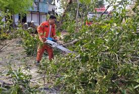 မြောက်ဦးမြို့၌ ဆိုင်ကလုန်းမုန်တိုင်း (မိုခါ) တိုက်ခတ်မှုကြောင့် ပျက်စီးခဲ့သည့် လူနေအိမ်များ၊ ဓာတ်တိုင်များနှင့် ပြိုလဲသစ်ပင်များအား စုပေါင်းရှင်းလင်း