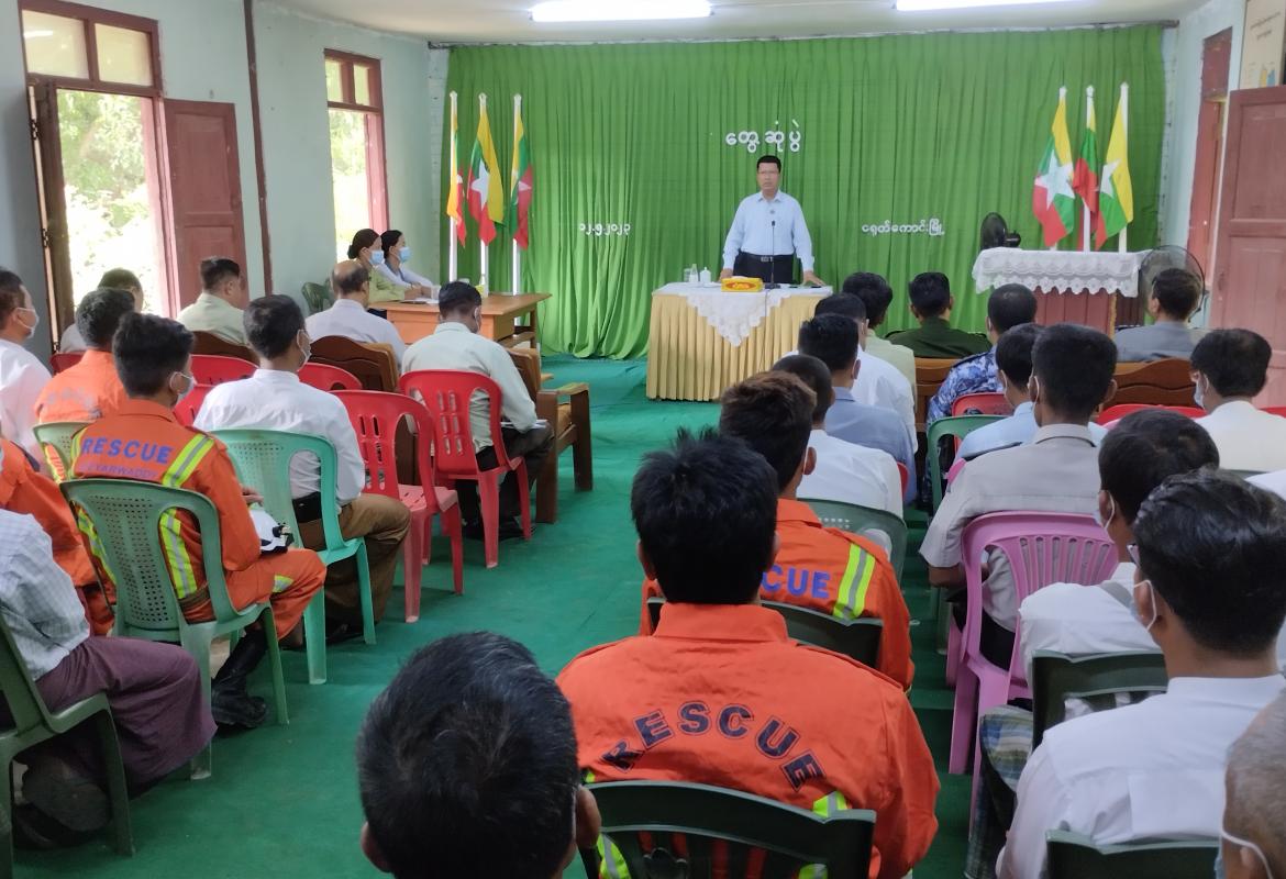 ဧရာဝတီတိုင်းဒေသကြီးဝန်ကြီးချုပ် ငရုတ်ကောင်းမြို့ရှိ သဘာဝဘေးအန္တရာယ်ဆိုင်ရာ စီမံခန့်ခွဲမှုကော်မတီဝင်များ၊ ဒေသခံပြည်သူများနှင့်တွေ့ဆုံ
