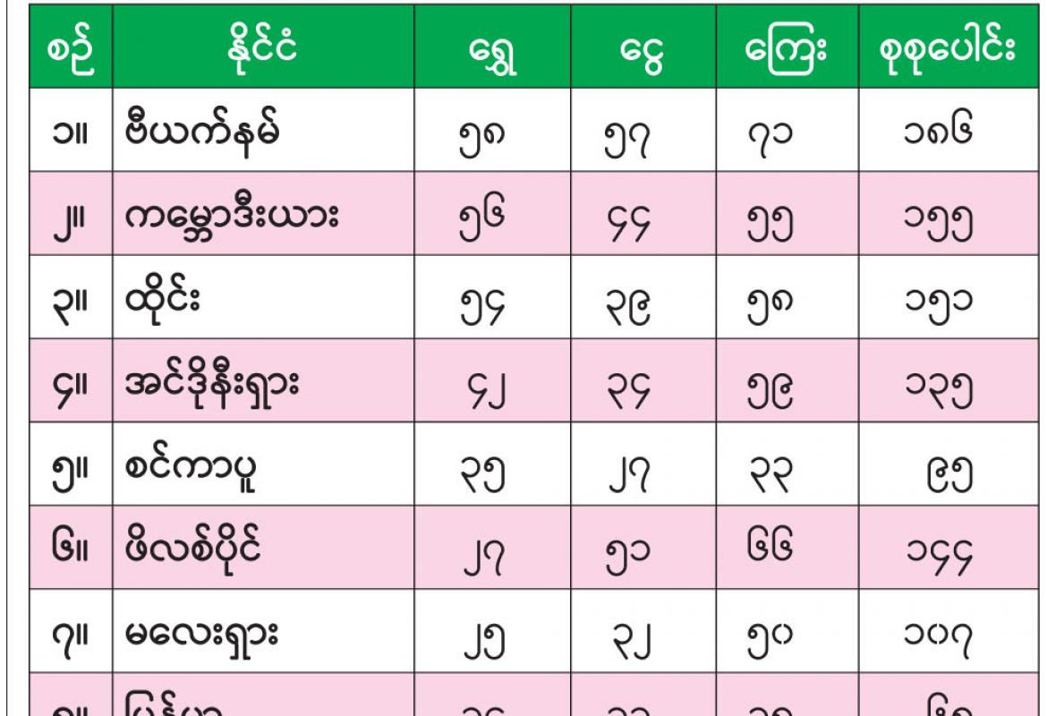 (၃၂) ကြိမ်မြောက် အရှေ့တောင်အာရှ အားကစားပြိုင်ပွဲ နိုင်ငံအလိုက် ဆုတံဆိပ်ရရှိမှု