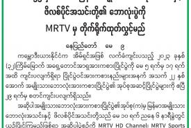 (၃၂) ကြိမ်မြောက် အရှေ့တောင်အာရှ အားကစားပြိုင်ပွဲမှ အသက် ၂၂ နှစ်အောက် မြန်မာအမျိုးသားဘောလုံးအသင်းနှင့် ဖိလစ်ပိုင်အသင်းတို့၏ ဘောလုံးပွဲကို MRTV မှ တိုက်ရိုက်ထုတ်လွှင့်မည်