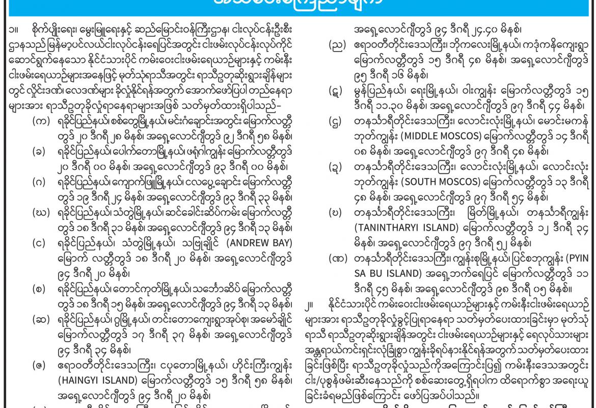 ရန်ကုန်မြို့နှင့် မန္တလေးမြို့အတွက် ရည်ညွှန်းလက်ကားဈေးနှုန်းများနှင့် ပြည်ထောင်စုနယ်မြေ နေပြည်တော်၊ တိုင်းဒေသကြီး/ပြည်နယ် မြို့တော်များအတွက် ရည်ညွှန်းလက်လီဈေးနှုန်းများ