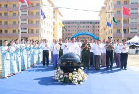 ဒုတိယဝန်ကြီးချုပ်နှင့် ပြည်ထောင်စုဝန်ကြီး ဗိုလ်ချုပ်ကြီးတင်အောင်စန်း ရန်ကုန်မြို့ရှိ မြန်မာ့ဆိပ်ကမ်းအာဏာပိုင် စက်ဆန်းမိသားစုဝန်ထမ်းအိမ်ရာသစ်နှင့် သီရိအဏ္ဏဝါ ခန်းမသစ်ဖွင့်လှစ်ခြင်း အခမ်းအနားသို့တက်ရောက်