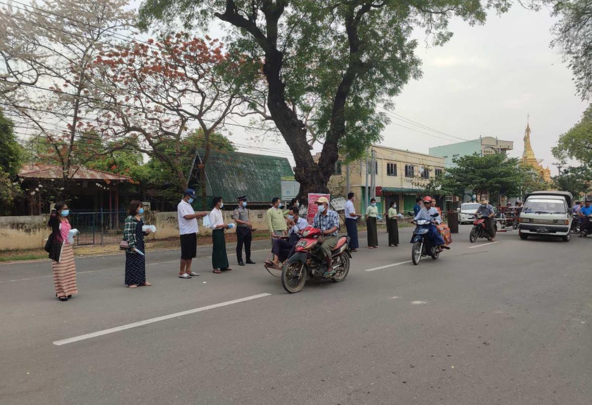 မုံရွာမြို့၌ ကိုဗစ်-၁၉ ရောဂါကာကွယ်ရေး အသိပညာပေးခြင်းနှင့် နှာခေါင်းစည်းများ အခမဲ့ဖြန့်ဝေ