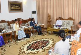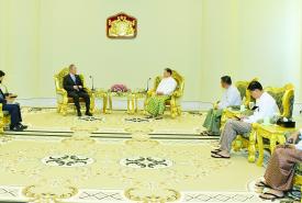 ပြည်ထောင်စုဝန်ကြီး ဒေါက်တာ သက်ခိုင်ဝင်း အပြည်ပြည်ဆိုင်ရာ ကြက်ခြေနီနှင့် လခြမ်းနီအသင်းများ ဖက်ဒရေးရှင်း (IFRC) မှ အာရှပစိဖိတ်ဒေသဆိုင်ရာ ညွှန်ကြားရေးမှူး Mr. Alexander James Matheou နှင့် မြန်မာနိုင်ငံ ကြက်ခြေနီအသင်း ဥက္ကဋ္ဌ ဦးဆောင်သည့် ကိုယ်စားလှယ်အဖွဲ့ကိ