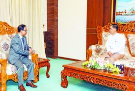 ပြည်ထောင်စုဝန်ကြီး ဦးကိုကိုလှိုင် မြန်မာနိုင်ငံဆိုင်ရာ ဘင်္ဂလားဒေ့ရှ်ပြည်သူ့သမ္မတနိုင်ငံ သံအမတ်ကြီး မစ္စတာ မန်ဂျူရူလ် ကရင်ခမ် ချောင်ဒရီ အား လက်ခံတွေ့ဆုံ