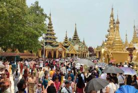 ၁၃၈၅ ခုနှစ် မြန်မာနှစ်ဆန်းတစ်ရက်နေ့ အခါသမယတွင် ရန်ကုန်မြို့ရှိ ရွှေတိဂုံ စေတီတော် မြတ်ကြီးနှင့် တန်ခိုးကြီးဘုရား စေတီများ၌ ကုသိုလ်ကောင်းမှု ပြုသူများ ဖြင့်စည်ကားလျှက်ရှိ