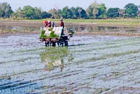 ပွင့်ဖြူမြို့နယ် အမှတ်(၄၆)စက်မှုလယ်ယာဦးစီးဌာနက ဒေသခံတောင်သူများ သီးနှံအထွက်နှုန်း တိုးတက်စေရေးနှင့် စိုက်ပျိုးစရိတ်ကုန်ကျမှု သက်သာစေရန် ကောက်စိုက်စက်ဖြင့် နွေစပါးများ ကူညီစိုက်ပျိုးပေး
