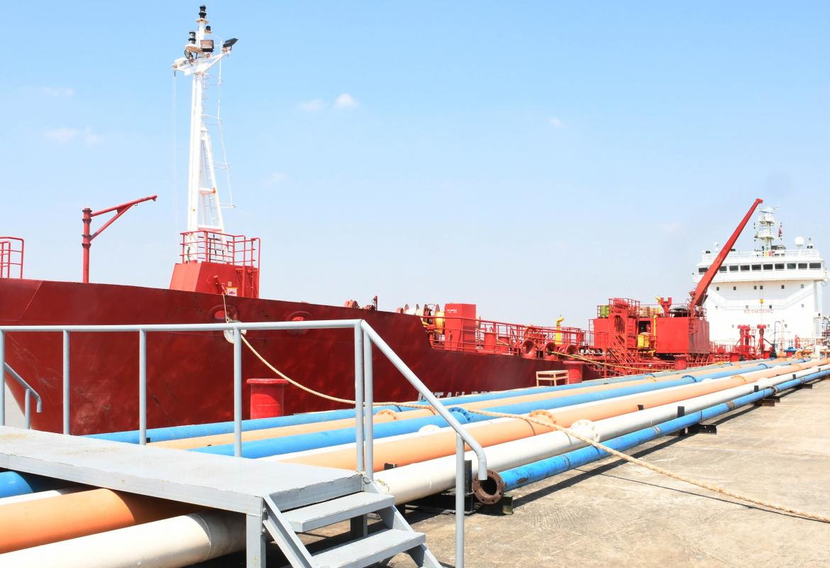စင်ကာပူနိုင်ငံမှတင်သွင်းလာသည့် စက်သုံးဆီတင်သင်္ဘောကြီးများ သီလဝါဆိပ်ကမ်းရှိ ဆိပ်ခံတံတားများသို့ ဆိုက်ကပ်
