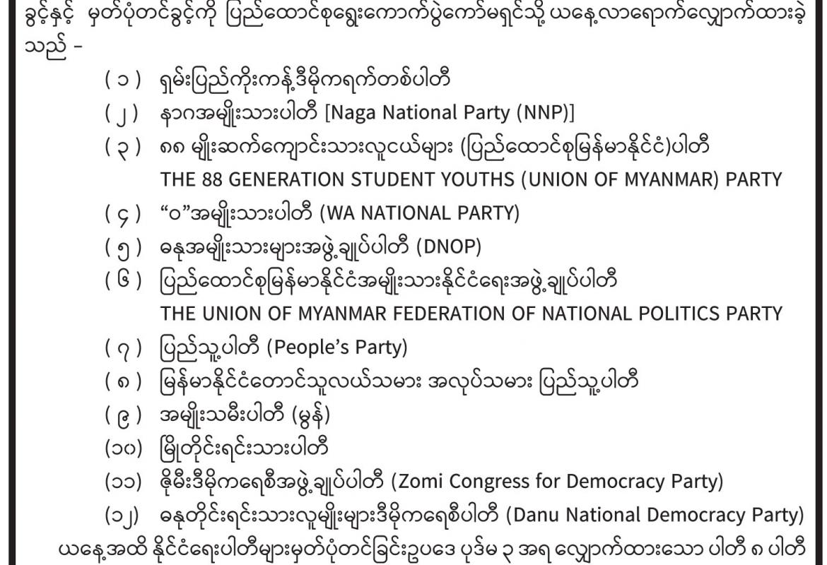နိုင်ငံရေးပါတီတည်ထောင်ခွင့်နှင့် မှတ်ပုံတင်ခွင့်များ လာရောက်လျှောက်ထားလျက်ရှိ