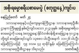 အစိုးရဓမ္မာစရိယစာမေးပွဲ (စတုတ္တနေ့) ကျင်းပ