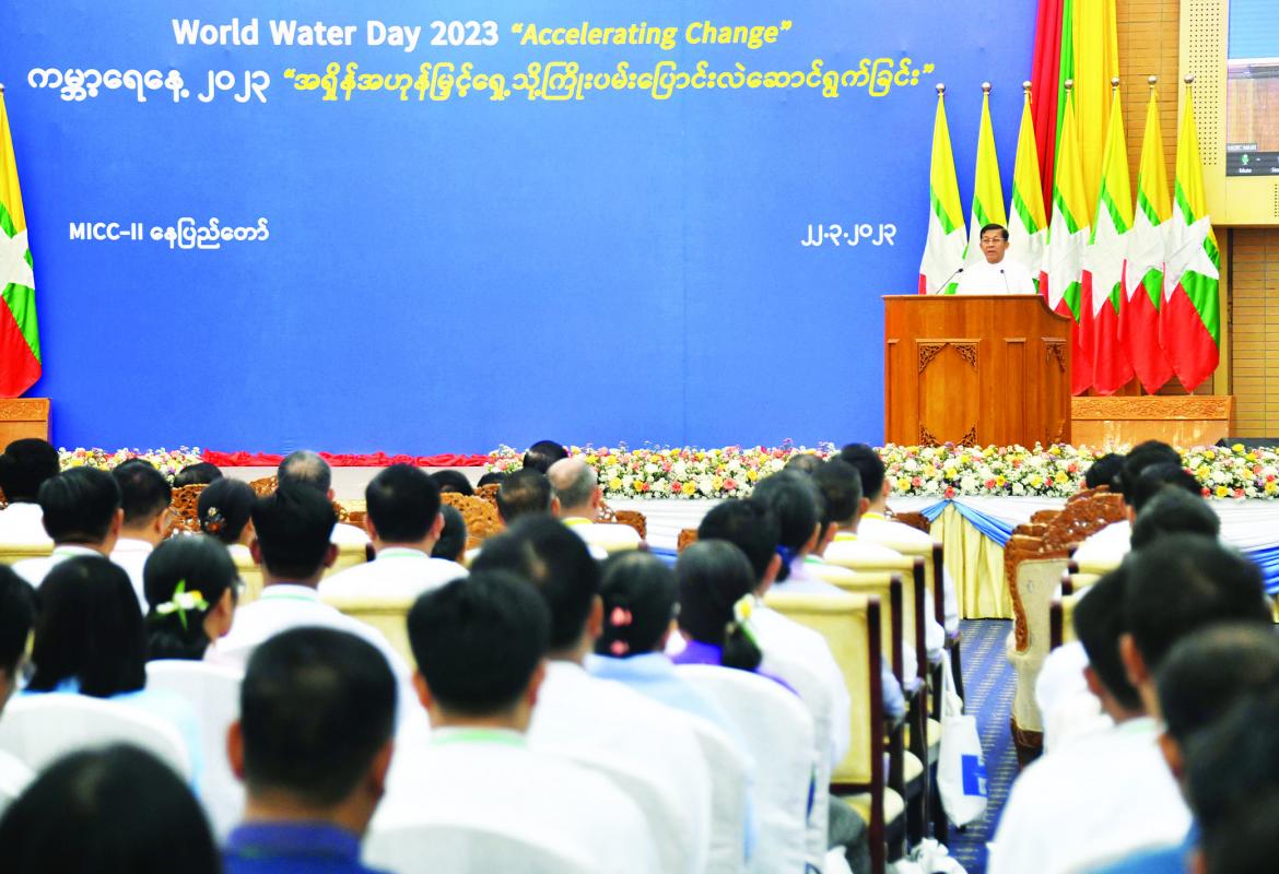 အမျိုးသားအဆင့်ရေအရင်းအမြစ်ကော်မတီဥက္ကဋ္ဌ နိုင်ငံတော်စီမံအုပ်ချုပ်ရေးကောင်စီဥက္ကဋ္ဌ နိုင်ငံတော်ဝန်ကြီးချုပ် ဗိုလ်ချုပ်မှူးကြီး မင်းအောင်လှိုင် ကမ္ဘာ့ရေနေ့ ၂၀၂၃ အခမ်းအနားသို့ တက်ရောက်အမှာစကားပြောကြား