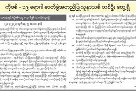 ကိုဗစ်-၁၉ ရောဂါ ဓာတ်ခွဲအတည်ပြုလူနာသစ် တစ်ဦး တွေ့ရှိ