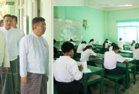 ပြည်ထောင်စုဝန်ကြီး ဒေါက်တာညွန့်ဖေ ၂၀၂၃ ခုနှစ် တက္ကသိုလ်၀င်စာမေးပွဲ တတိယနေ့ သင်္ချာဘာသာရပ် ဖြေဆိုနေမှု လှည့်လည်ကြည့်ရှုအားပေး