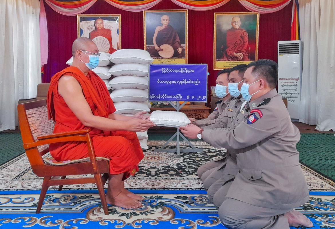 ပြည်ထဲရေးဝန်ကြီးဌာန မိသားစုများက ဆွမ်းဆန်တော်နှင့် ဆန်ကြာဆံများ ဆက်ကပ်လှူဒါန်း