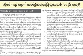 ကိုဗစ်-၁၉ ရောဂါ ဓာတ်ခွဲအတည်ပြုလူနာသစ် ၁၀ ဦး တွေ့ရှိ