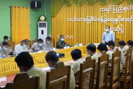 ရန်ကုန်တိုင်းဒေသကြီး ဝန်ကြီးချုပ် ဦးစိုးသိန်းသည် တာဝန်ရှိသူများနှင့်အတူ မတ် ၁ ရက်က ရန်ကုန်တိုင်းဒေသကြီး အစိုးရအဖွဲ့ရုံး မင်္ဂလာခန်းမ၌ ပြုလုပ်သော တိုင်းဒေသကြီးရှိ .............