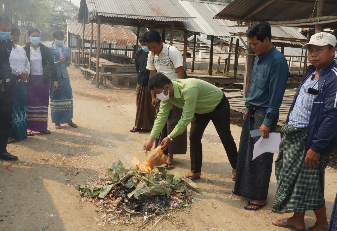 ဇေယျာသီရိမြို့နယ်၌ ခွင့်မပြုဓာတုဆိုးဆေးများပါဝင်သည့် ငရုတ်သီးခွဲခြမ်းမှုန့်များအား မီးရှို့ဖျက်ဆီး