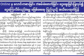 Online မှ လောင်းကစားခြင်း၊ ကံစမ်းမဲဖောက်ခြင်း၊ ငွေချေးခြင်းပြုလုပ်၍ ငွေကြေးလိမ်လည်ခံရမှု မဖြစ်စေရေး ပြည်သူသို့ အသိပေးထုတ်ပြန်