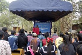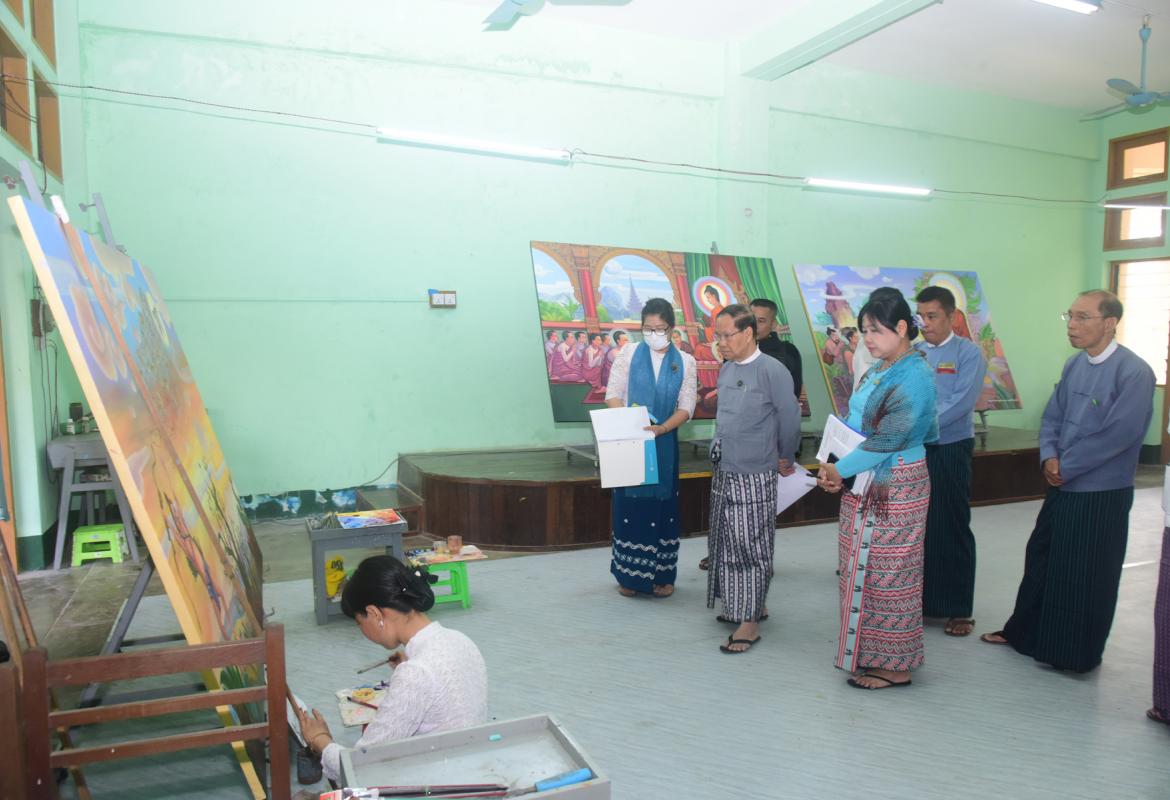 သာသနာရေးနှင့်ယဉ်ကျေးမှုဝန်ကြီးဌာန ပြည်ထောင်စုဝန်ကြီး ဦးကိုကို မာရဝိဇယ ရုပ်ပွားတော်မြတ်ကြီးတွင် ထားရှိမည့် ပန်းချီကားများရေးဆွဲနေမှုကို ကြည့်ရှုစစ်ဆေး