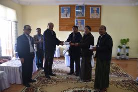 နိုင်ငံတော်စီမံအုပ်ချုပ်ရေးကောင်စီအဖွဲ့ဝင် ဒေါက်တာမှုထန်နှင့် ပြည်ထောင်စုဝန်ကြီး Jeng Phang နော်တောင် တိုင်းရင်းသားလူမျိုးများ ရေးရာဝန်ကြီးဌာန ၊ချင်းပြည်နယ် ညွှန်ကြားရေးမှူးရုံးရှိ ဝန်ထမ်းများနှင့်တွေ့ဆုံ
