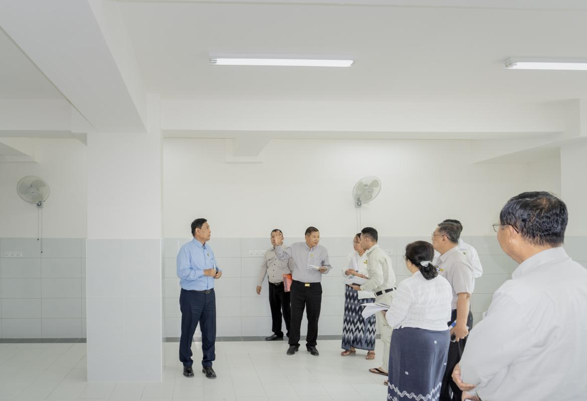 ပြည်ထောင်စုဝန်ကြီး ဦးမျိုးသန့် ရန်ကုန်ပြည်သူ့ဆေးရုံကြီး အဆင့်မြင့် (၇)ထပ်ဆောင် ဆောက်လုပ်နေမှုကို ကြည့်ရှုစစ်ဆေးပြီး ရန်ကုန်တိုင်းဒေသကြီးအတွင်းရှိ ဝန်ထမ်းများနှင့် တွေ့ဆုံ