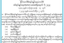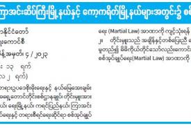 ကယားပြည်နယ်အတွင်းရှိ မြို့နယ်အချို့၌ စစ်အုပ်ချုပ်ရေးအာဏာ ကျင့်သုံးရန် အပ်နှင်း