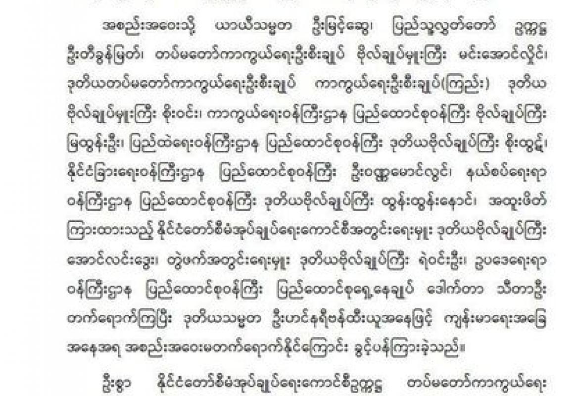 နိုင်ငံတော်တည်ဆောက်ရေး လုပ်ငန်းများဆောင်ရွက်ရာတွင် နိုင်ငံတော်အစိုးရတစ်ရပ်တည်းက ကြိုးပမ်း အကောင်အထည်ဖော်ရုံနှင့် ပြည့်စုံလုံလောက်မှုမရှိနိုင်