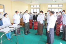 ပြည်ထောင်စုဝန်ကြီး ဒေါက်တာပွင့်ဆန်း ပြည်ထောင်စုနယ်မြေ (နေပြည်တော်)ရှိ သူနာပြုသင်တန်းကျောင်း (နေပြည်တော်) ၌ အကူသူနာပြုကျွမ်းကျင်မှု အဆင့် (၂) အလုပ်အကိုင်အတွက် ကျွမ်းကျင်မှုစစ်ဆေးအကဲဖြတ်နိုင်ရေး ပြင်ဆင်ဆောင်ရွက်နေမှုကို ကြည့်ရှုစစ်ဆေးအားပေး