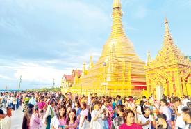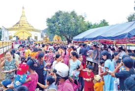 မကွေးမြို့ မြသလွန်စေတီတော်မြတ်ကြီး၏ ဗုဒ္ဓပူဇနိယပွဲတော်တွင် ဘုရားဖူးလာပြည်သူများဖြင့် စည်ကား