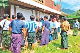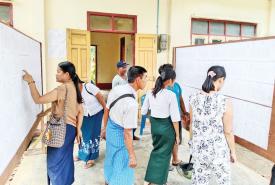 နောင်မွန်းမြို့နယ်၌ မဲဆန္ဒရှင်စာရင်းများ ကပ်ထားကြေညာရာ မဲဆန္ဒရှင်ပြည်သူများ လာရောက်ကြည့်ရှု