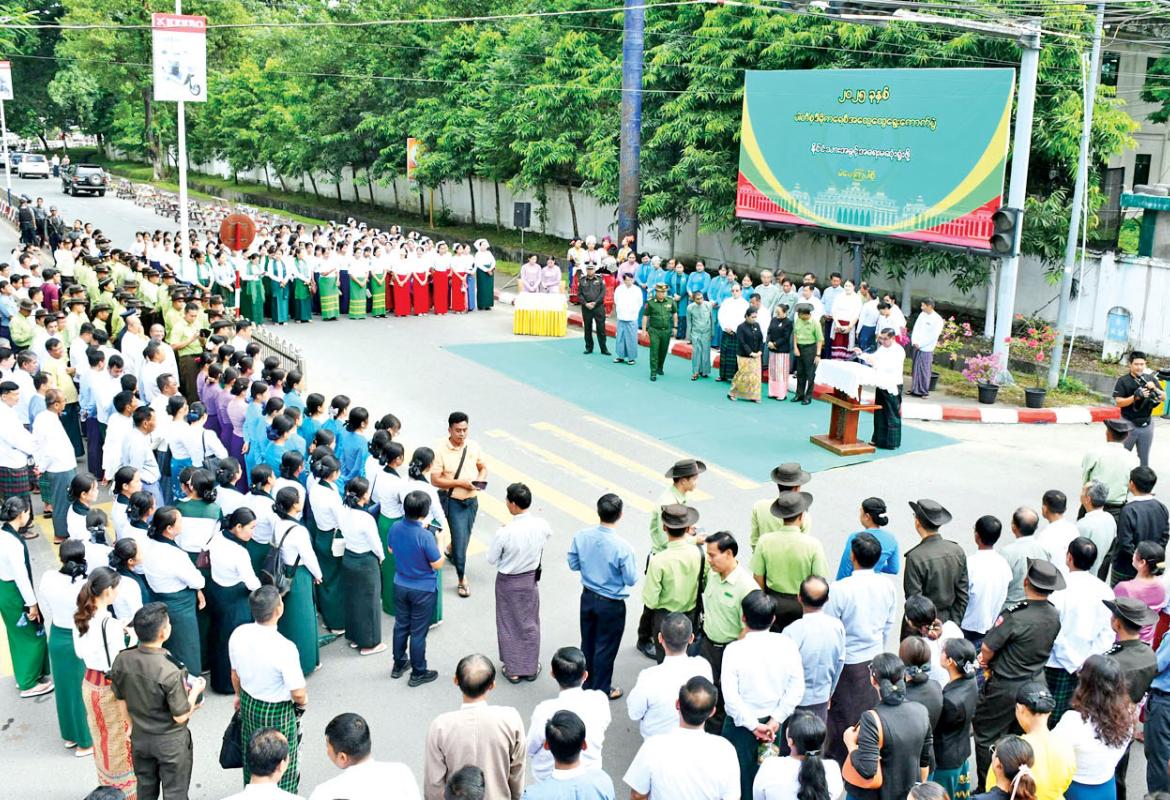 နိုင်ငံတည်ငြိမ်အေးချမ်းပြီး တရားဥပဒေစိုးမိုးမှုရှိစေရေး မိမိတို့အနေဖြင့် ဒီမိုကရေစီနည်းလမ်းဖြင့် ဆောင်ရွက်လျက်ရှိ တည်ငြိမ်အေးချမ်းပြီး တရားဥပဒေစိုးမိုးမှုရှိမှသာ ပြည်သူများ အလုပ်အကိုင်များ အဆင်ပြေချောမွေ့ပြီး နိုင်ငံဖွံ့ဖြိုးတိုးတက်လာမည်
