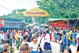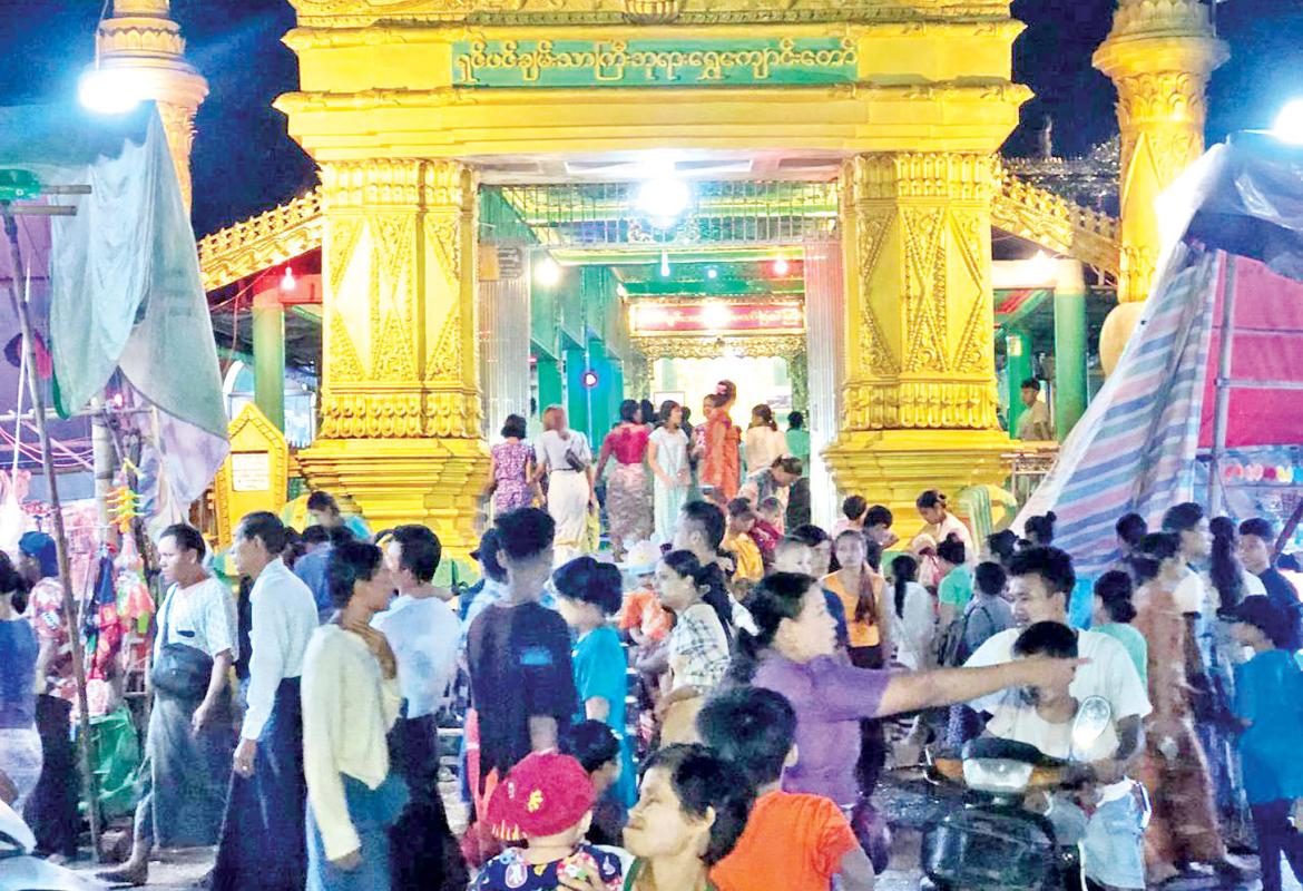 အိမ်မဲမြို့တည် သမိုင်းဝင်ရှင်ပင်ချမ်းသာကြီးဘုရား၌ သီတင်းကျွတ်လပြည့်နေ့တွင် ဘုရားဖူးလာပြည်သူများဖြင့်စည်ကား